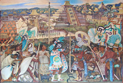 Pour approcher l'histoire de ce pays, ce n'est pas vers Frida Kahlo devenue une icône nationale (ce qui ne serait sûrement pas de son goût si elle voyait ce qu'on fait de son image, maintenant) que je me suis tournée, mais vers l'un des trois plus grands muralistes qu'a compté le Mexique, à savoir Diego Rivera (qui fut aussi l'époux de Frida).